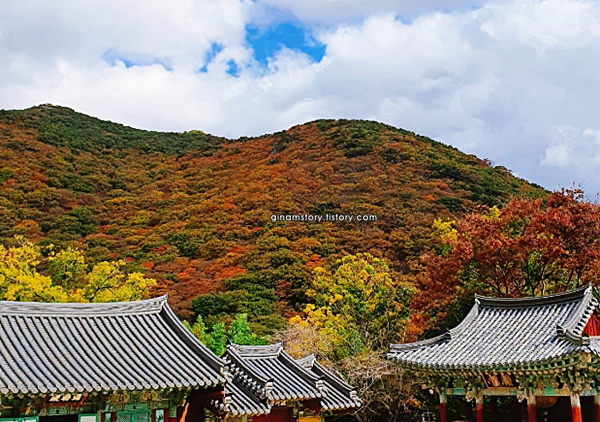불상 앞에 앉아 있으면 바람 소리와 새소리가 함께 어우러져 마음이 차분히 가라앉았습니다. 천천히 둘러보다 보면 가을 햇살이 전각 지붕 위로 내려앉아 특별한 감동을 주었습니다.