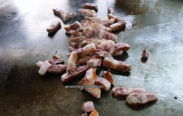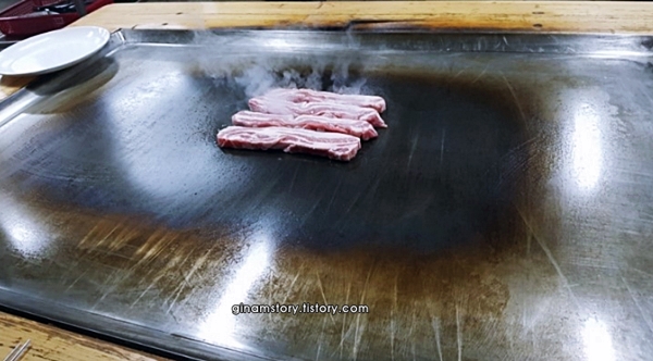 당구대통철판삼겹살은 이름처럼 넓은 철판 위에 고기가 지글지글 익어가는 모습부터 눈길을 사로잡았습니다. 고기가 얇지 않고 도톰해서 씹는 식감이 살아 있었고, 육즙도 가득해서 한 점 먹을 때마다 감탄이 나왔습니다.