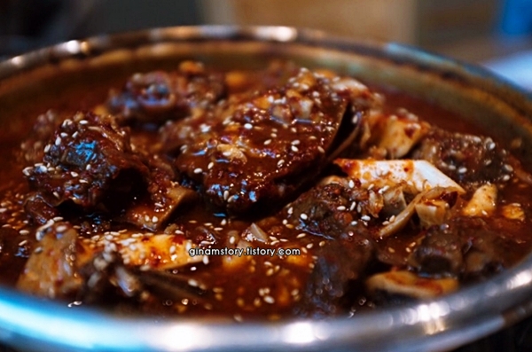 정안정에서 매운갈비찜을 먹어보니 첫맛은 달콤하고 뒤끝이 강렬하게 매운 맛이 인상 깊었습니다. 갈비는 살이 부드럽게 발라질 정도로 푹 익어 있어 입안에서 살살 녹았습니다. 양념이 깊게 배어 있어 밥과 함께 먹기에 딱 좋았습니다.