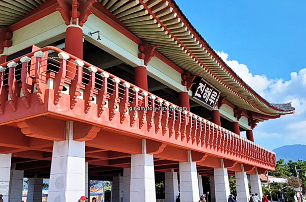 진해루는 바다 위에 떠 있는 듯한 정자 형태의 건물이 인상적이었고, 가까이 다가갈수록 더 웅장하게 느껴졌습니다. 해질 무렵 방문했더니 붉게 물든 하늘과 바다가 어우러져 정말 아름다운 풍경이 펼쳐졌습니다.